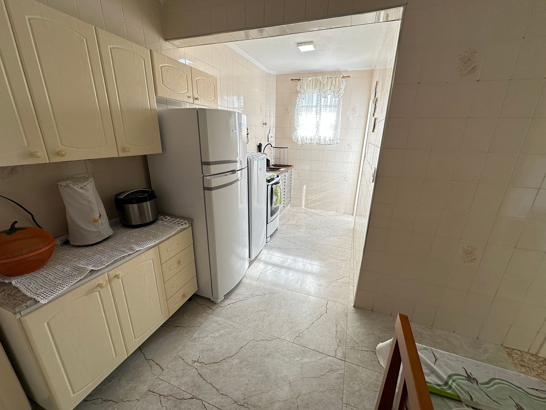 Além da acomodação no apartamento, os hóspedes têm acesso à área de convivência do prédio, e lava pés.