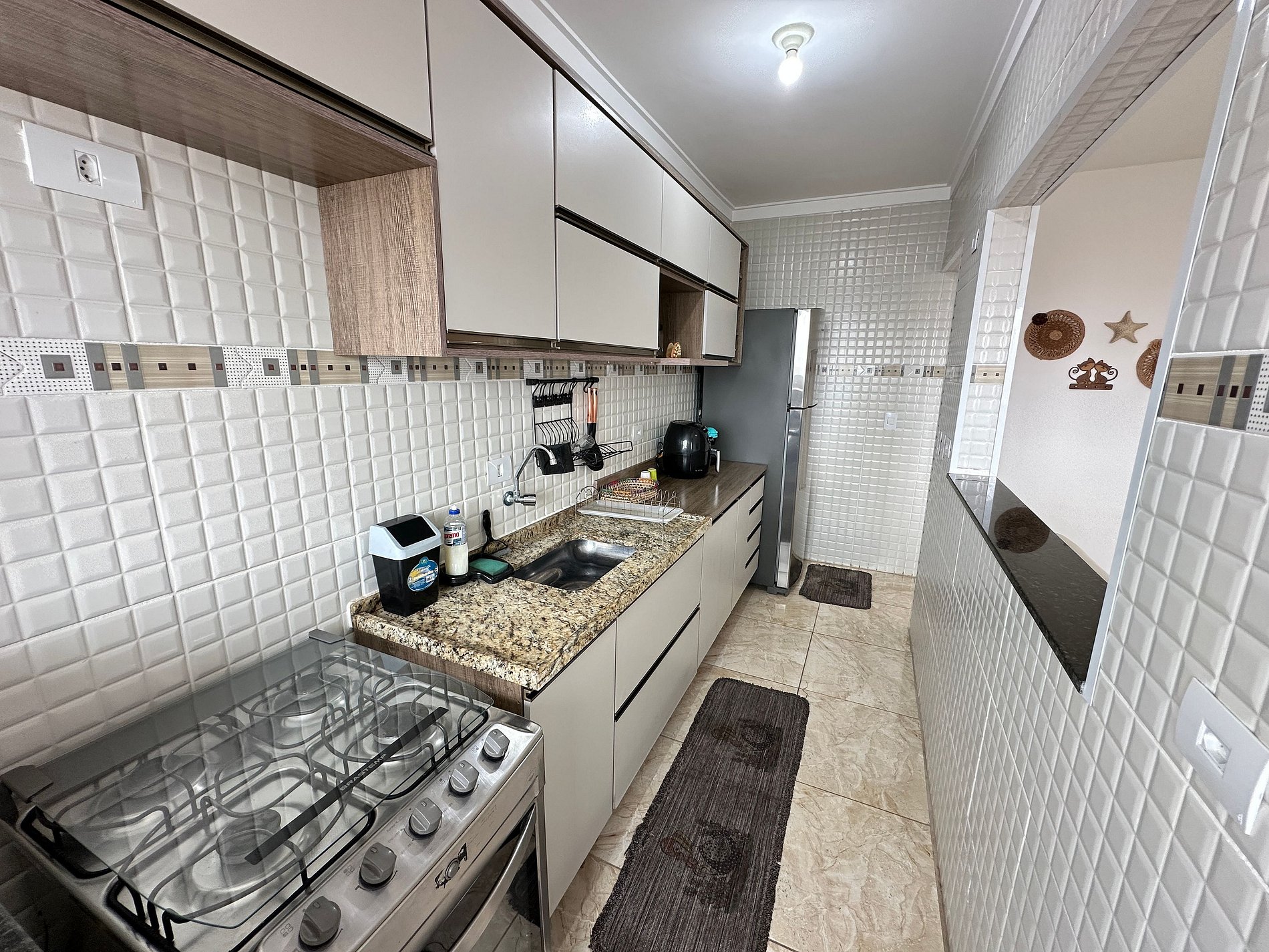 O apartamento oferece uma linda vista para o mar, criando uma atmosfera relaxante e agradável. A cozinha é totalmente equipada, ideal para quem gosta de preparar suas próprias refeições, e o ambiente é espaçoso e bem decorado. Com portaria 24h e vaga de garagem, os hóspedes têm segurança e praticidade. A localização é excelente — perto da praia, comércios e a poucos passos da academia Panobianco.