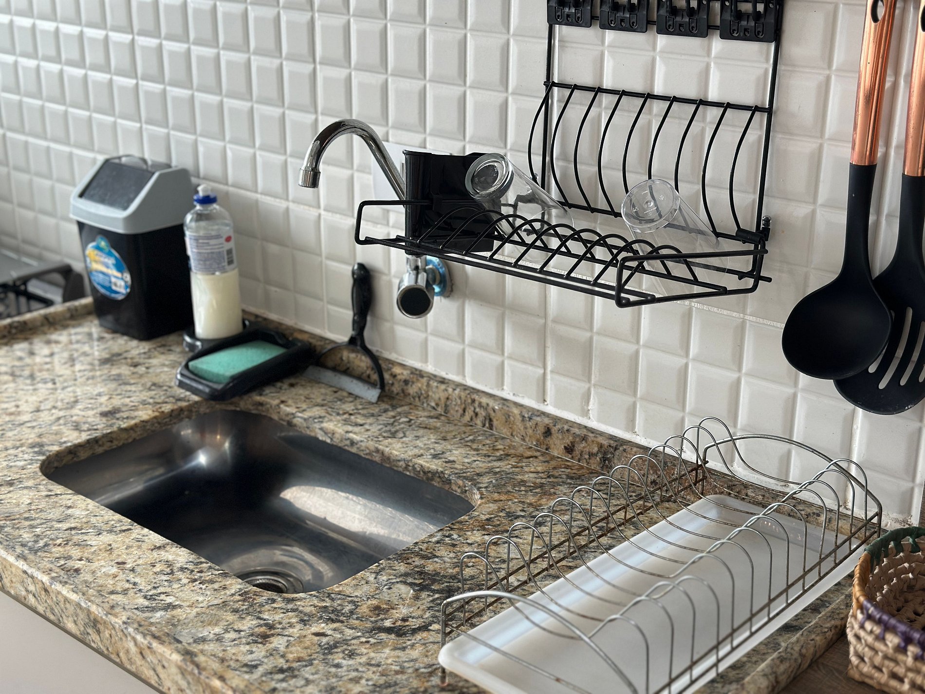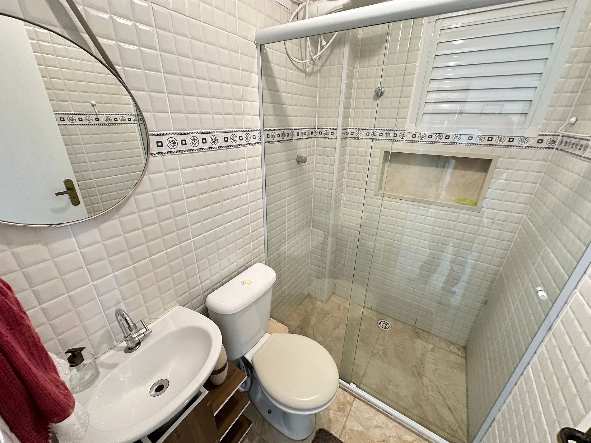 Os hóspedes têm acesso à área de convivência do prédio, que oferece lava-pés e uma vaga de garagem.
