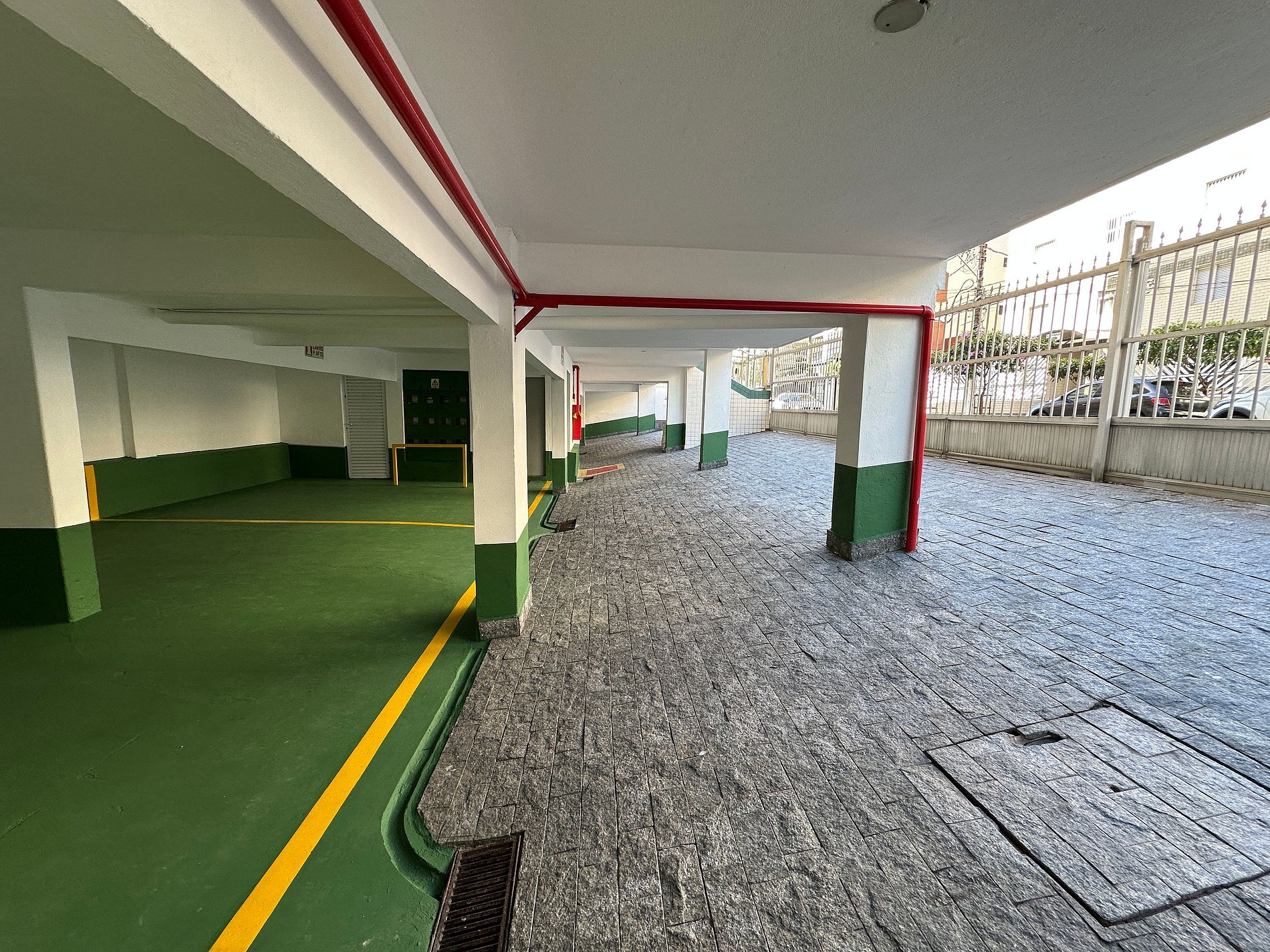 Os hóspedes têm acesso à área de convivência do prédio, que oferece lava-pés e uma vaga de garagem.