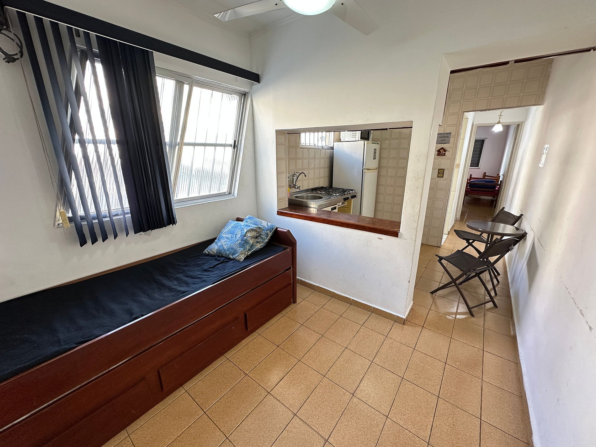 A ventilação natural, o ambiente iluminado e o clima leve do bairro contribuem para uma estadia agradável. É um espaço simples, funcional e acolhedor — perfeito para descansar após um dia de sol e mar.