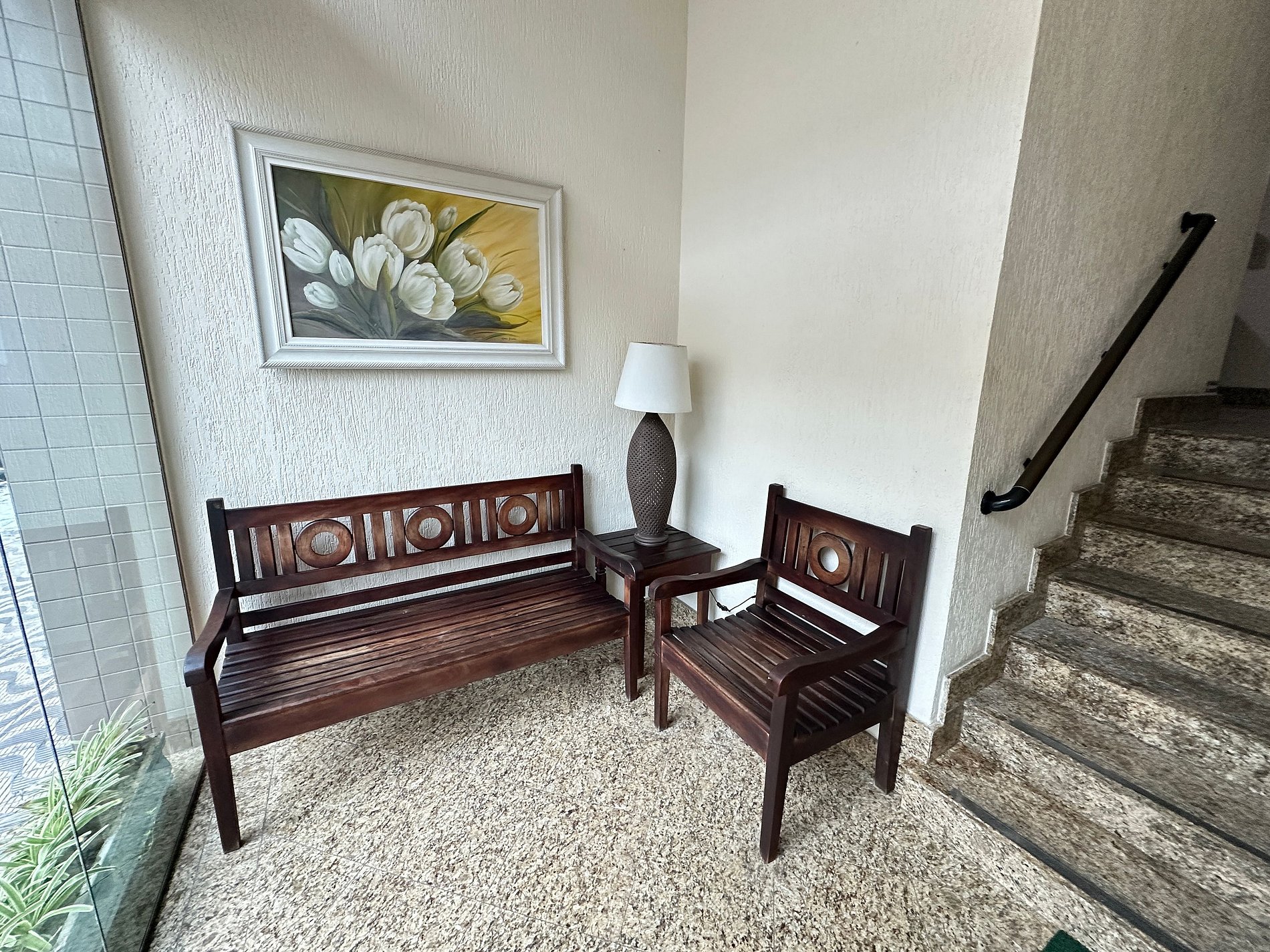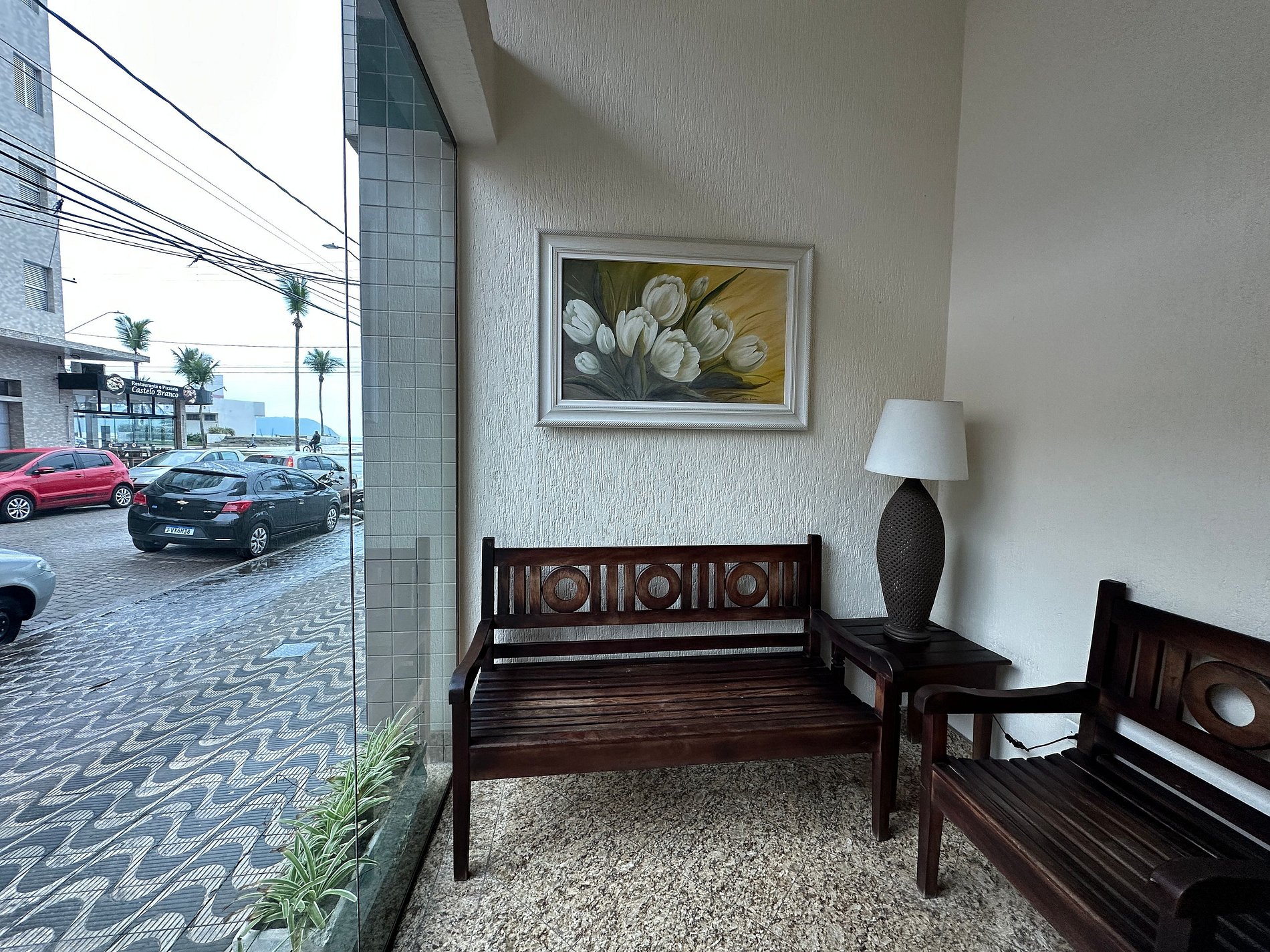 Os hóspedes têm acesso à área de convivência do prédio, que oferece lava-pés.