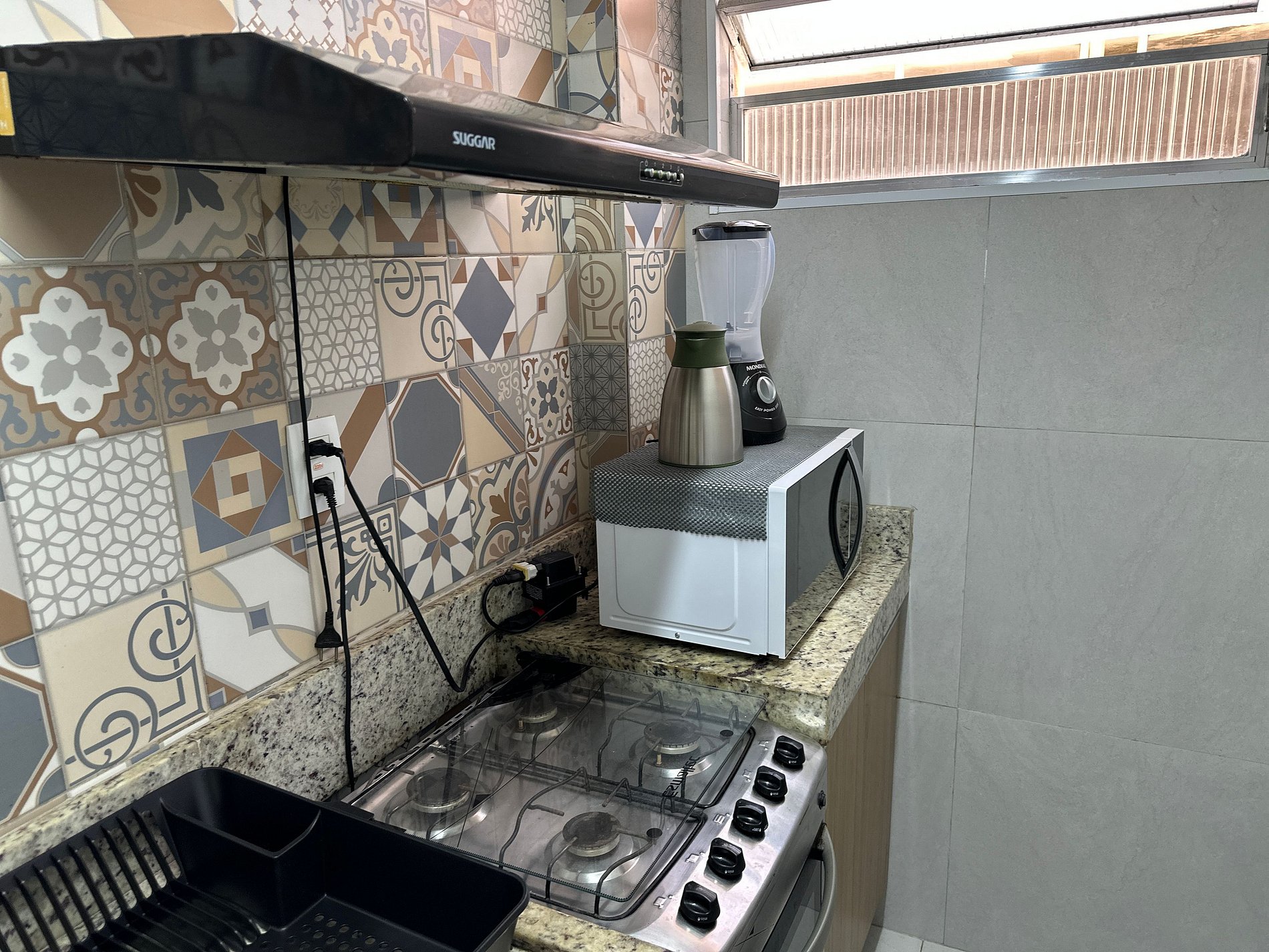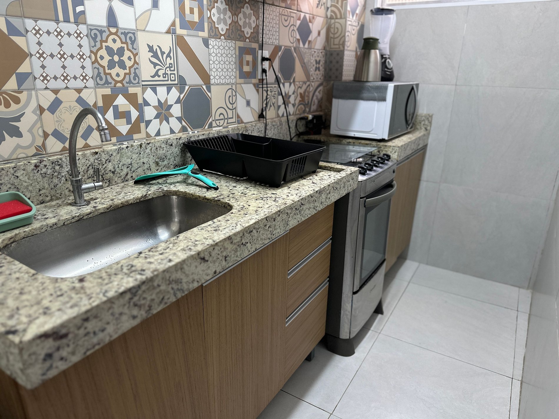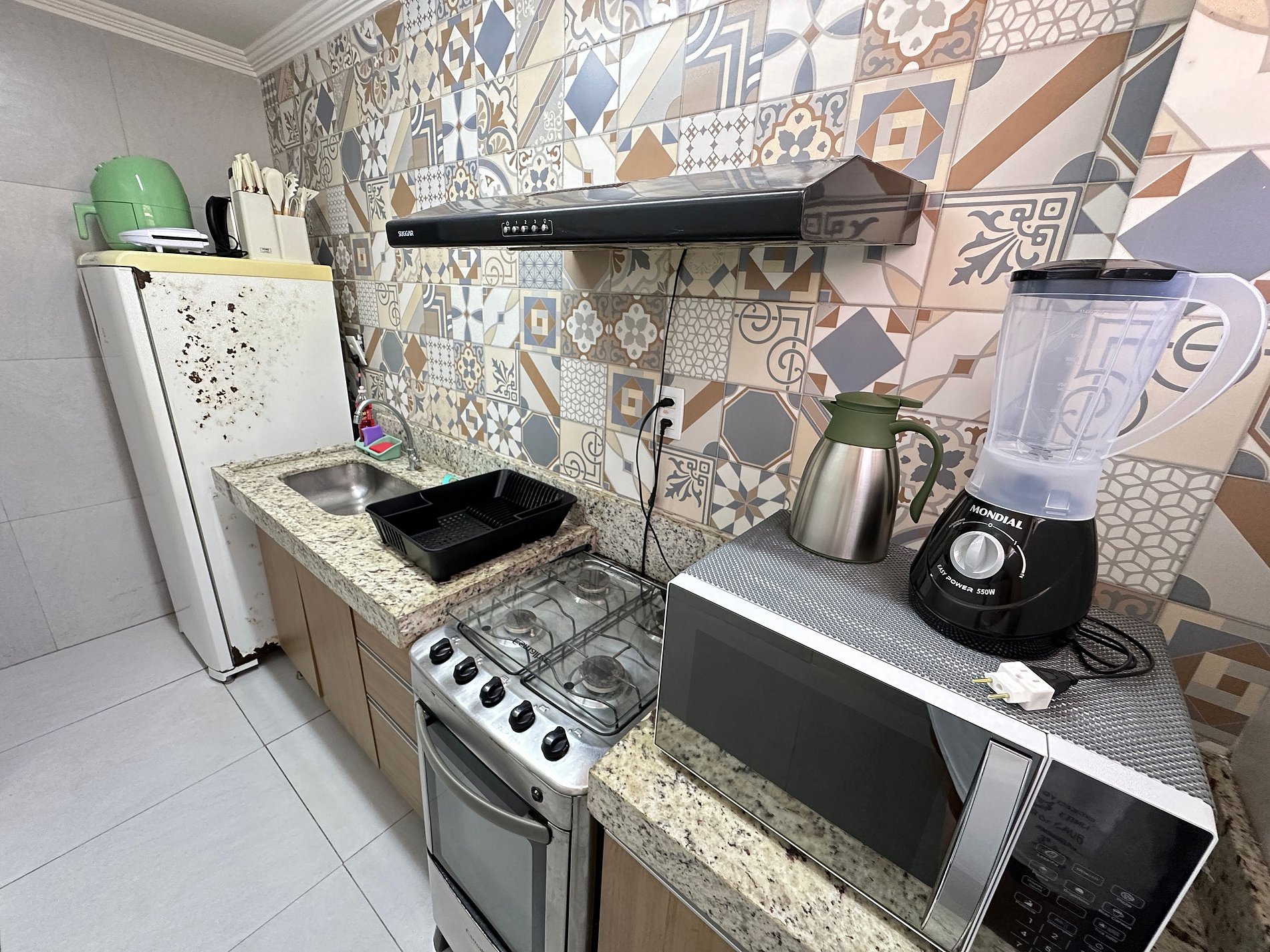 • Cozinha completa (geladeira, fogão, micro-ondas, air fryer, utensílios completos)