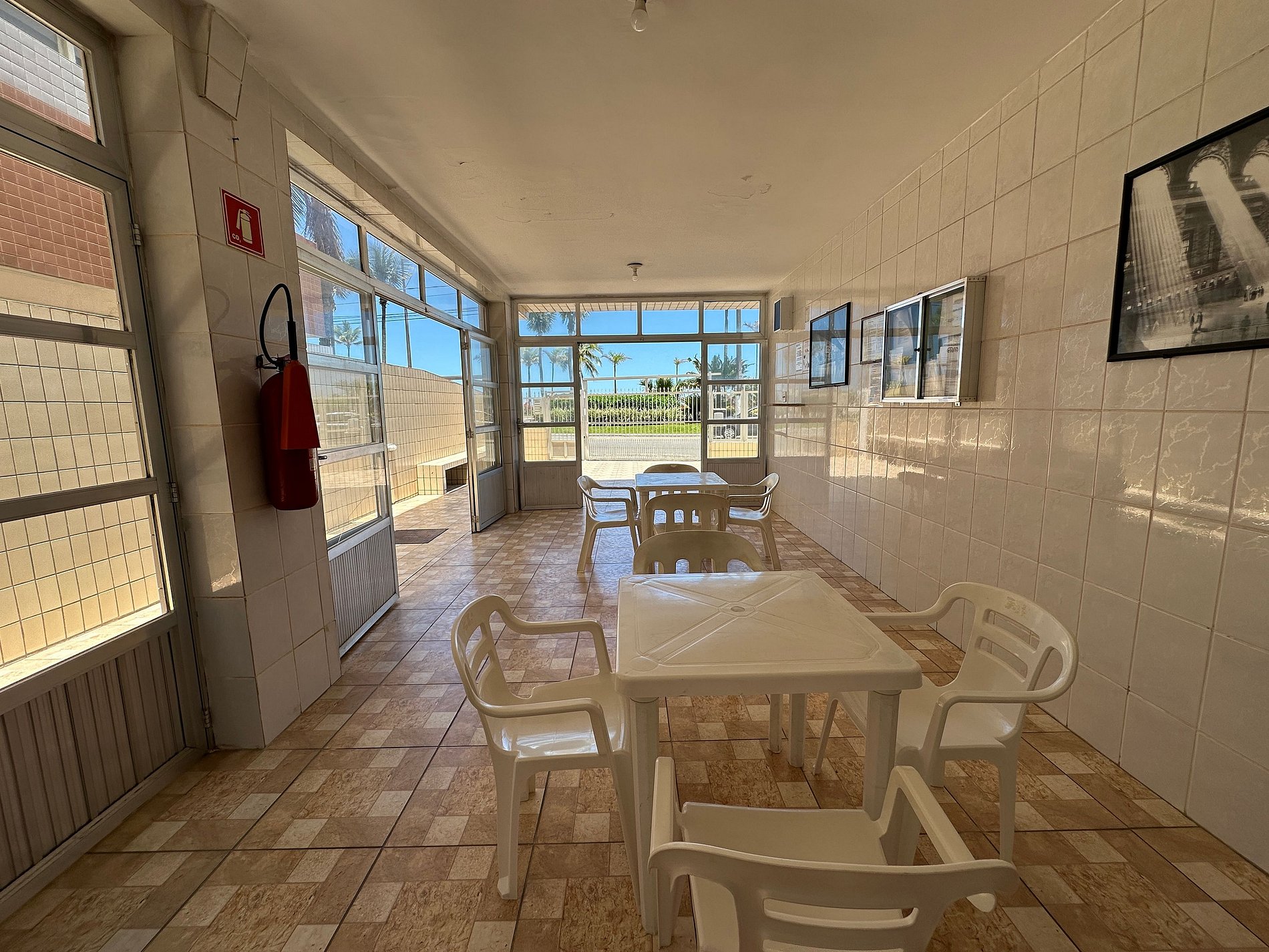 Os hóspedes têm acesso à área de convivência do prédio, que oferece lava-pés.
