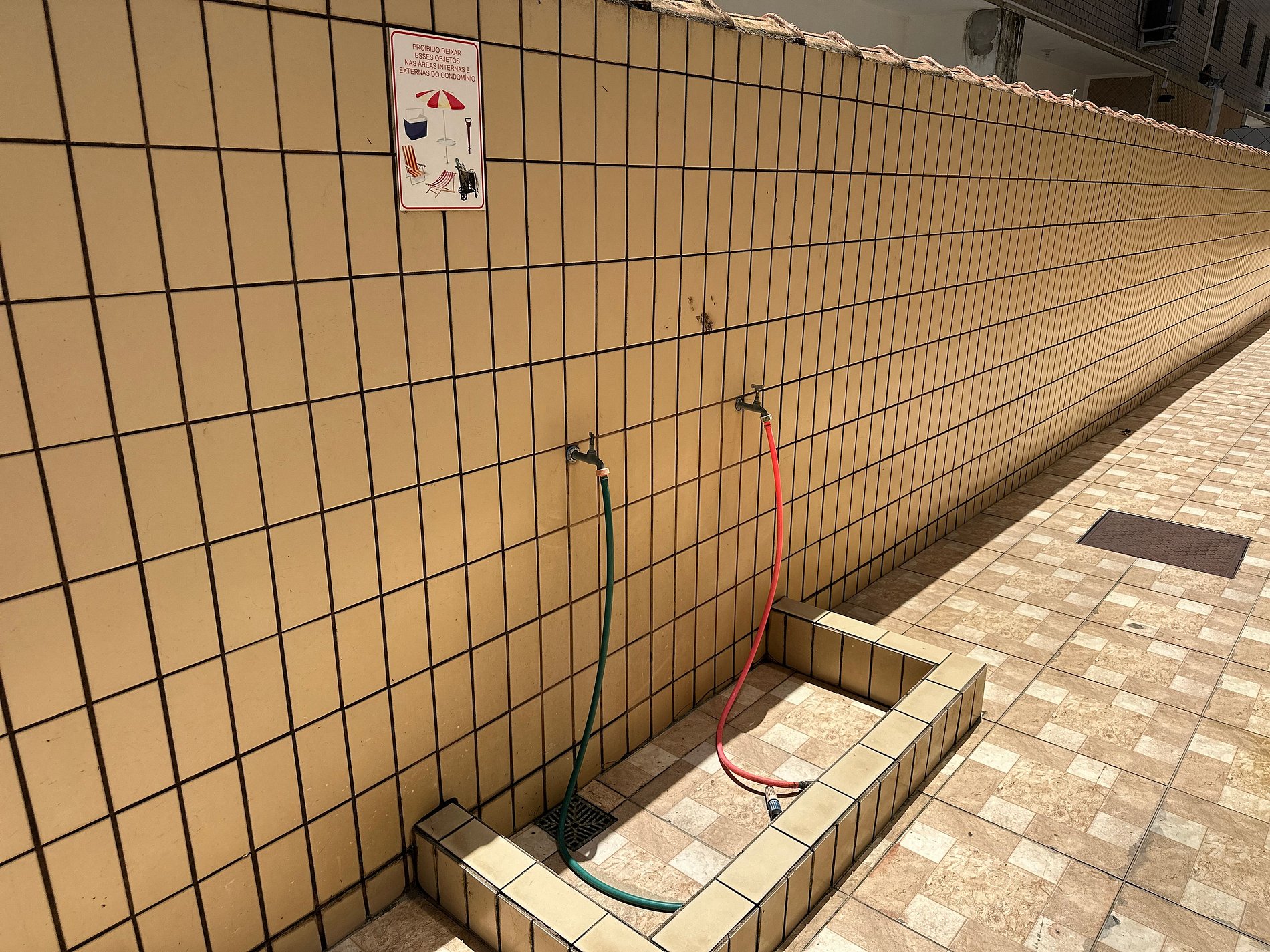 • Ao retornar da praia, é obrigatório utilizar o lava-pés para retirar toda a areia dos pés, das roupas, das cadeiras e demais itens, antes de entrar no prédio e no apartamento.