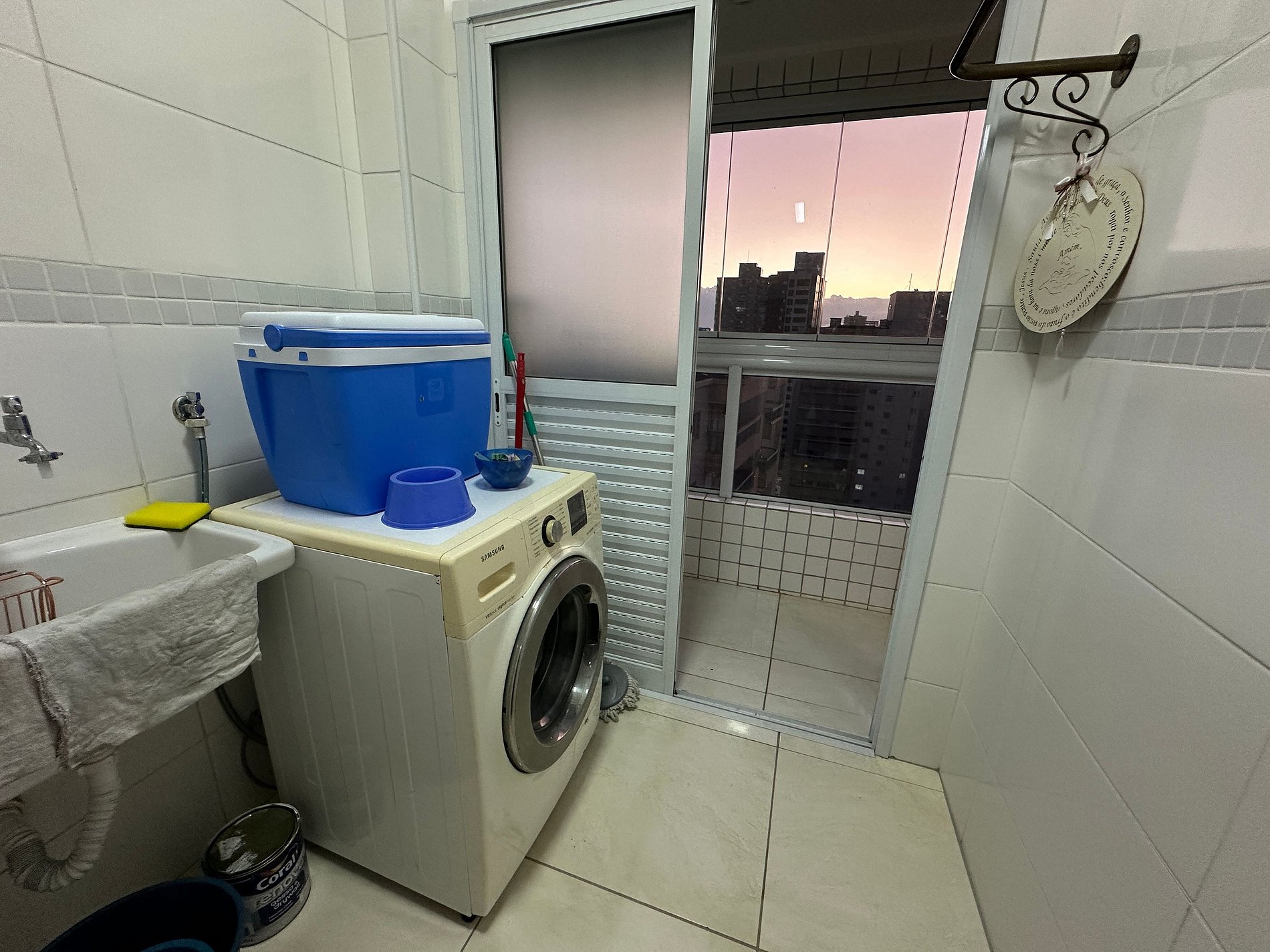 Os hóspedes têm acesso à área de convivência do prédio, que oferece lava-pés e uma vaga de garagem.