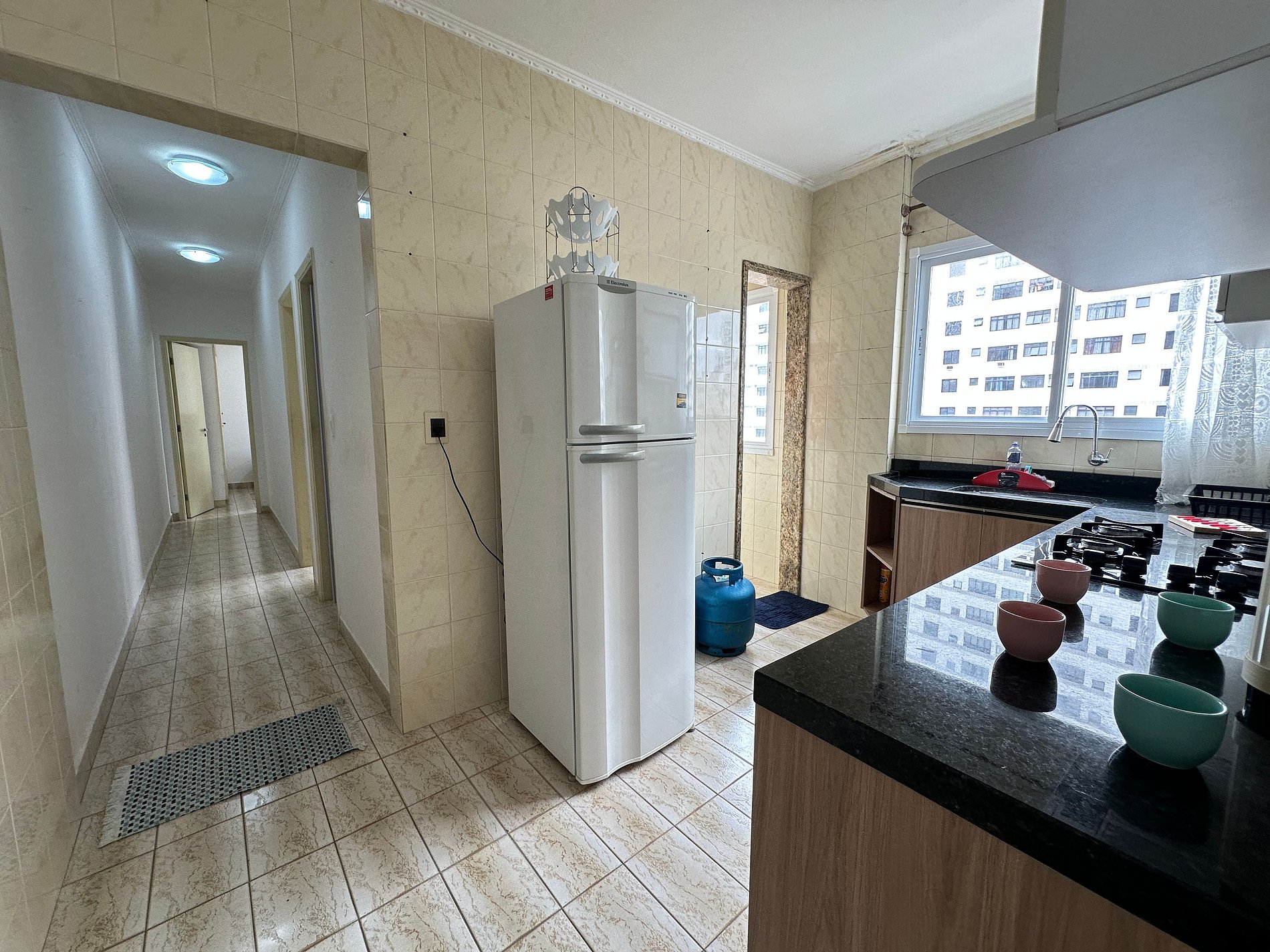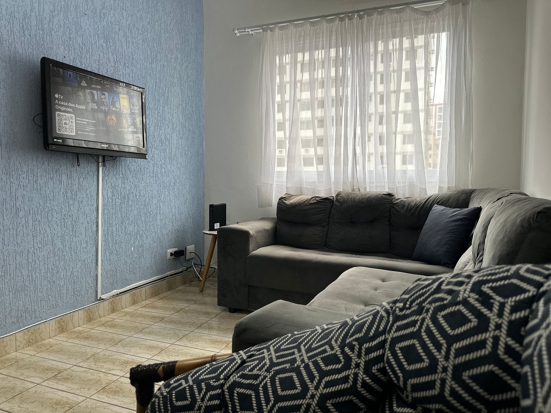 Além da acomodação no apartamento, os hóspedes têm acesso à área de convivência do prédio, elevadores e estacionamento.