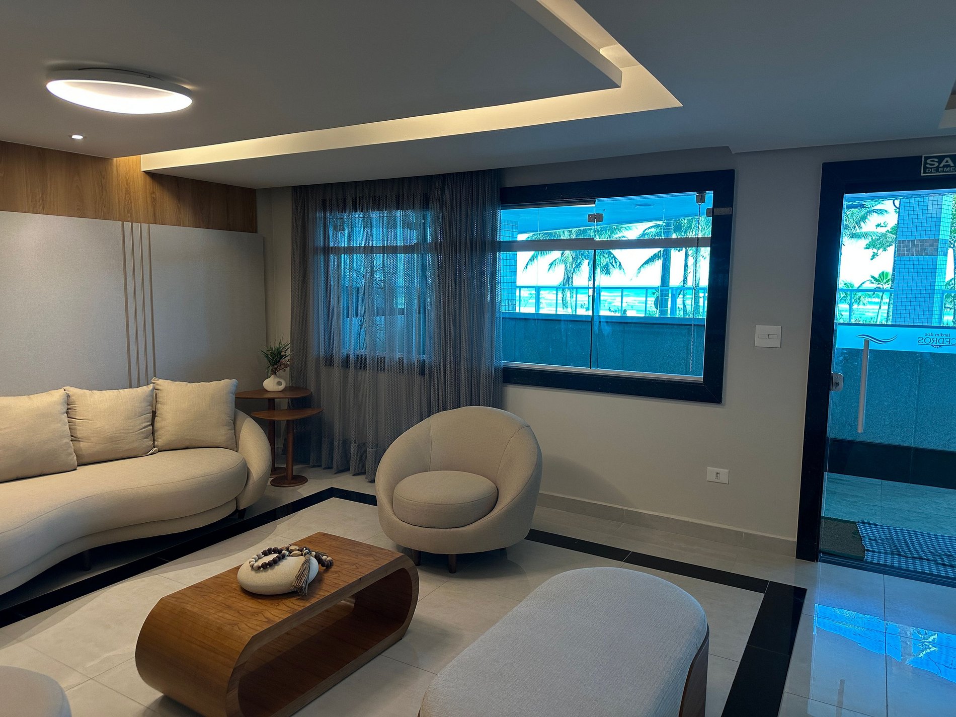 Apartamento de alto padrão frente ao mar no Jardim Real, moderno e equipado para até 6 pessoas. Imóvel impecável com itens novos, cozinha completa e sala integrada com Smart TV. Possui fechadura eletrônica para acesso prático sem chaves. Oferece sofisticação e conforto absoluto com vista privilegiada para o oceano. Ideal para quem busca uma experiência premium à beira-mar. Ambiente planejado em cada detalhe para garantir total comodidade durante sua estadia.