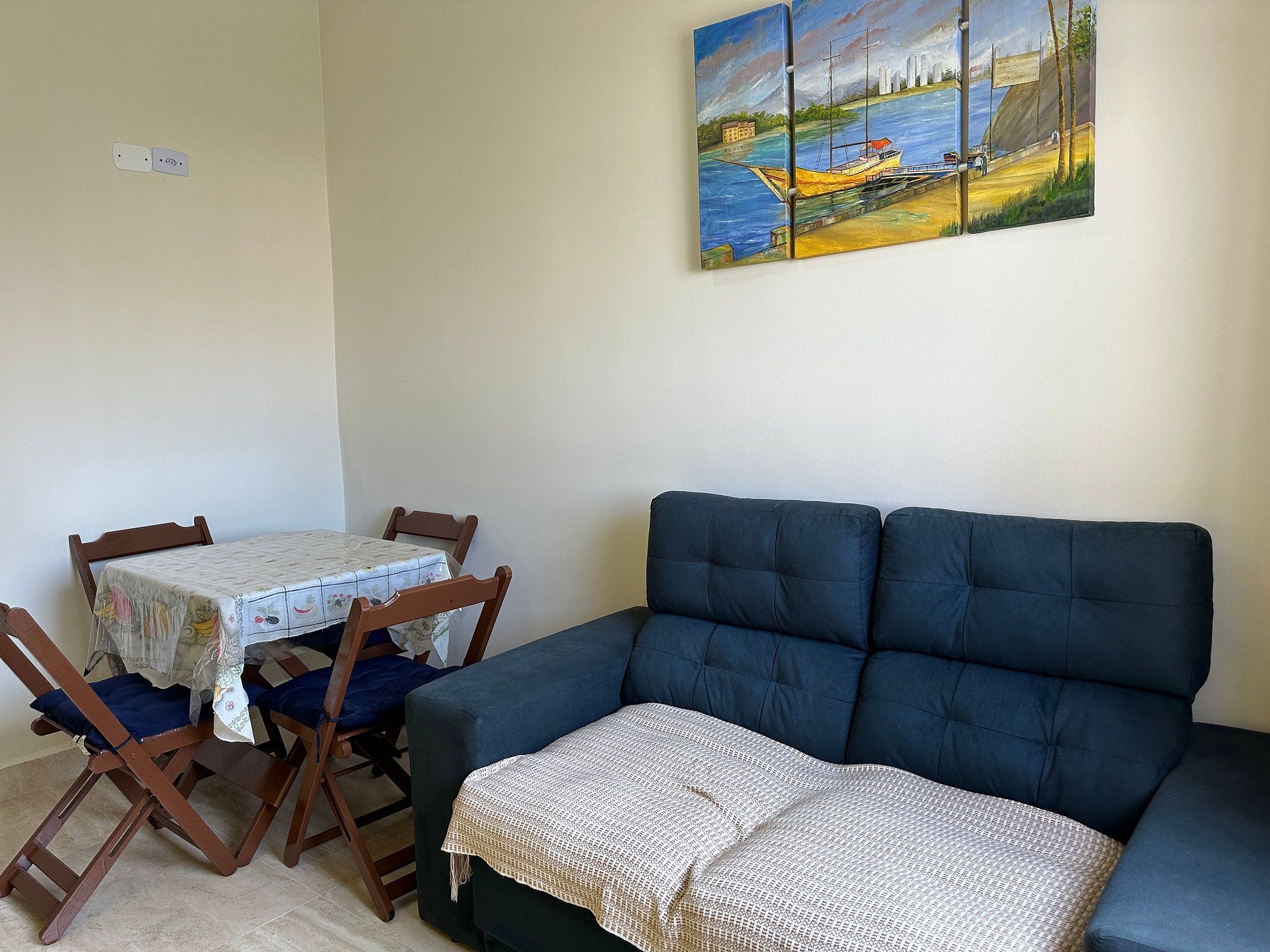 O espaço conta com ventilador de teto na sala e no quarto, TV, cozinha completa com eletrodomésticos e utensílios e um ambiente limpo e acolhedor. Ideal para quem busca descansar, trabalhar ou curtir o litoral com tranquilidade e comodidade.