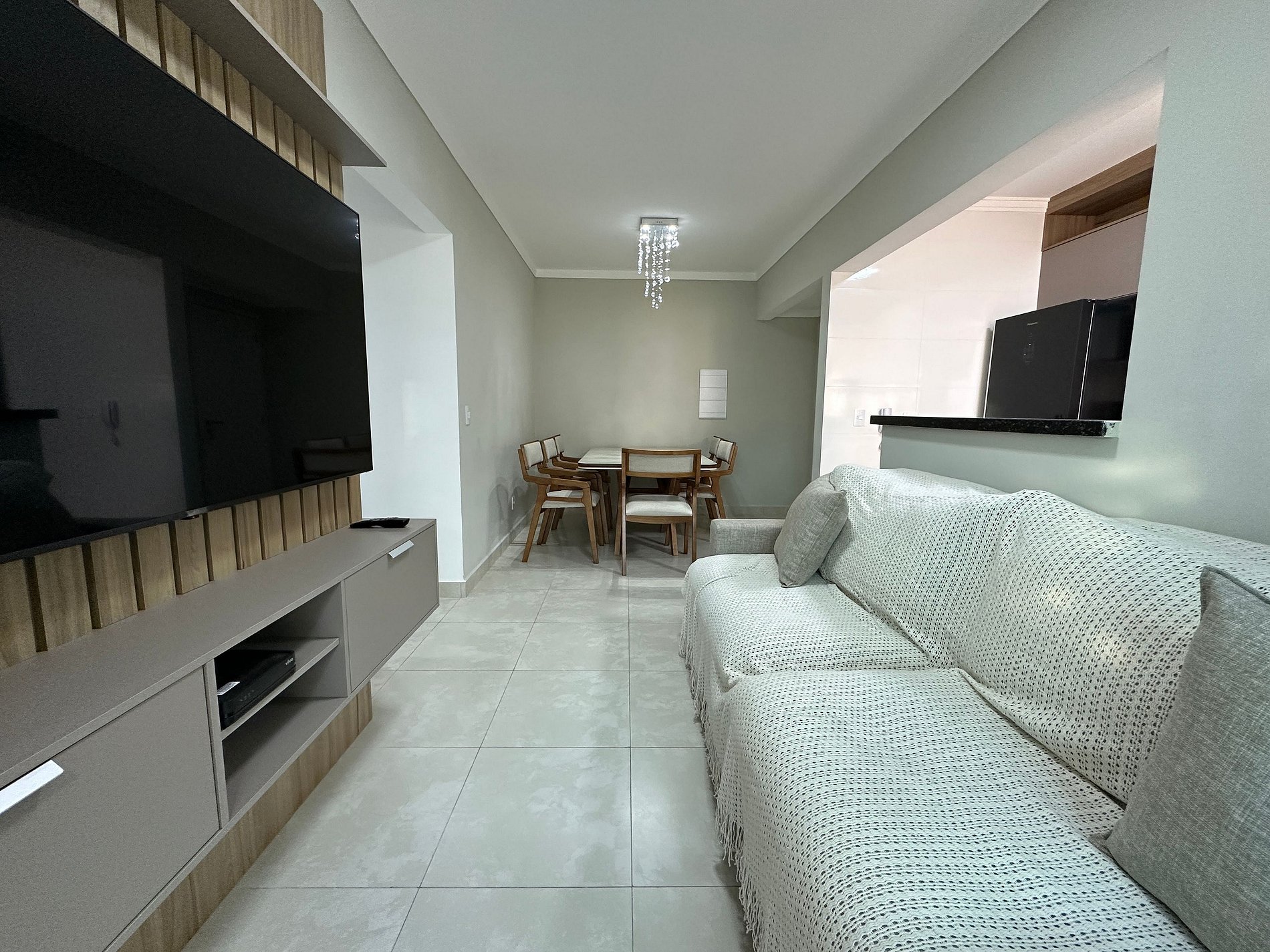 Apartamento com excelente localização no bairro Aviação, com 2 dormitórios (1 suíte), um com 1 cama de casal e o outro com 1 cama de casal e 1 de solteiro, sala com sofá, tv, wifi, mesa de jantar com 6 cadeiras, cozinha equipada com geladeira, fogão, airfryer, cafeteira, liquidificador, panelas e utensílios, lavanderia com máquina de lavar, varanda com churrasqueira elétrica.